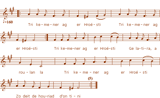 1. Tri kemener ag er Hroésti (5 gwech)